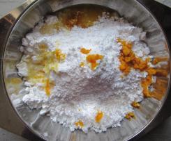 - 3 Teelöffel geriebene Orangenschale, (ca. 2 unbehandelte Orangen)