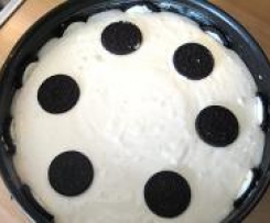 Die Masse nun in die Springform gießen und mit 6 Oreo Hälften dekorieren