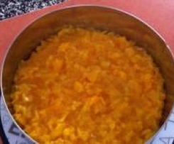 200 ml Maracujasaft, Aranca im Mixtopf 3-4 Sek. Stufe 3, dann 3 Min/Stufe 4 schlagen. Diese Masse dann gleichmäßig über die Sahne verstreichen.