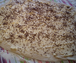 Hefeteig ausrollen und mit Masse bestreichen, Schokostreusel/Schokoraspel aufstreuen.