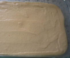 Siehe Bild einfetten und die fertige Masse auf`s Kuchenblech füllen....Aber die Form darf auch nicht so groß sein, sonst wird die Süßspeise nicht so hoch , sondern eher flach das wollen wir nicht!!