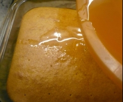 Nachdem der Kuchen aus dem Ofen genommen wurde, ratz fatz die löcher einstechen und die Zuckermasse schön langsam drauf gießen