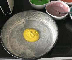 4. - Nun mit der ersten Teigmischung (z.B. gelb) 2 EL in die MITTE der vorbereiteten Springform geben