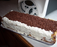 5--Über den Kuchen noch Creme und dann mit Schokostreusel und 1 Nacht durchziehen lassen !
