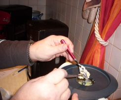 3--Und dann die Butter durch den Deckelöffnung bei ( Zimmer temperatur sehr weiche ) mit Teelöffel nach und nach einrühren in den Pudding Stufe 2 ./ rühren ..
