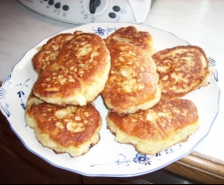 "Mixtopf geschlossen" und bei 4 Min ./ Stufe 4 ./ glatten Teig verrühren . ----!und 1 Min vor dem ablaufen den Apfel grob in der Masse geben auf das laufendemesser !!!3--Dann den Teig an einem warmen Ort abgedeckt ca.30 Minuten gehen lassen .-------und Esslöffelweise in einer mit Fett ausgestrichenen Pfanne bei ( mittlerer Hitze) von beiden Seiten ausbacken .