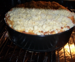 7. Den Backofen vorgeheizt 180 Grad 60 Min backen. (((( UND NACH 30 MIN BACKEN DEN RESTLICHEN STREUSELN DARÜBER GEBEN::::