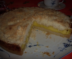 Kuchen mit weniger Zucker gebacken, dafür Pudding mit 1 Becher Sahne zusätzlich verfeinert.