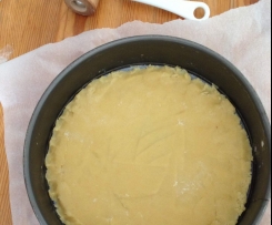Während der Rührteigboden im Ofen ist: in eine Springform unten Backpapier einklemmen. Der Rand braucht nicht gefettet zu werden.