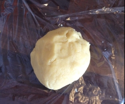 Den Teig auf der Arbeitsplatte zu einer Kugel formen, in Frischhaltefolie einpacken und für ca. 15 Minuten in den Kühlschrank legen. In der Zwischenzeit den Rührteig vorbereiten.