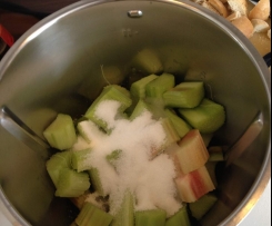- 500 g Rhabarber, geschält und in Stücken von ca. 3 cm