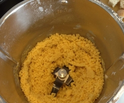 Zuerst den Mürbeteig herstellen. Dafür alle Zutaten in den Mixtopf geben und in 30-40 Sekunden/Stufe 4 zu einem vorerst noch krümeligen Teig verarbeiten.