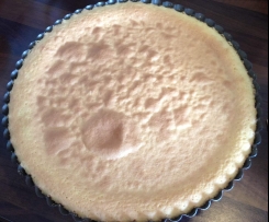 Obstboden großzügig mit der Erdbeermarmelade bestreichen (leider habe ich hier das Foto vergessen). Mürbeteigboden auf den Obstboden legen, ggf. etwas zurechtschneiden.