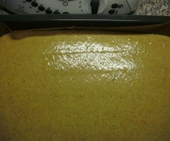 Teig war sehr flüssig, der Guss zu steif zum drüber streichen, hab noch etwas Milch bei getan, dann ging's!