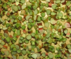 Rhabarber waschen, putzen und in 1cm lange Stücke schneiden