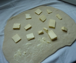 ja genau, die Butter kommt immer auf den ausgerollten Teig, wird verstrichen und dann wird gefaltet, wieder Butter usw.