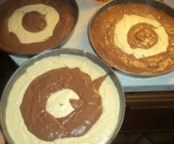 Zum restlichen Teig Kakao, Zucker und evtl etwas Rum/Milch hinzugeben und ca 20s / Stufe 4 verrühren.