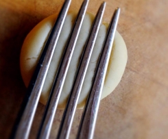 - Nun die Gabel ein zweites mal eindrücken (senkrecht zum 1. Mal)