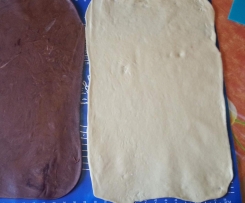 5. Danach den dunklen Teig in ungefähr der gleichen Größe wie den hellen Teig ausrollen.