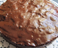 14. Den Kuchen rundherum mit der Glasur bestreichen und diese fest werden lassen. Diese Glasur bleibt aber sehr gut schneidfähig.