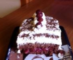 Gestern für unseren laktoseintoleranten Besuch gebacken. Der Boden war sehr gut, hatte bis jetzt immer mit Kakao-Biskuit Probleme. Aber der ging super auf. Habe 2 Gläser Sauerkirschen, 10 g Mo...in, genommen, da meinem Mann immer zuwenig Kirschen auf der Schwarzwälder sind. (Allerdings in Springform 26 cm gebacken.)