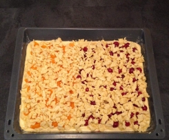 Der Streuselkuchen schmeckt super. Habe auch schon anderes Obst getestet. Er kam immer gut an
