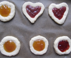 ich habe heute deine süße Teilchen nochmal in 2 Varianten gemacht. Einmal mit Kirschmarmelade und einmal mit Pudding Frischkäse. Ich habe den Pudding mit der halben Menge Milch gekocht. Etwas abkühlen lassen und dann mit einem Ei und halbes Päckchen Frischkäse Neutral verrührt. Den Pudding habe ich allerdings auskühlen lassen. Leider hatte ich keine Amarettinis gehabt und deshalb noch Streusel gemacht. Ist eine gute Idee ich habe davon eingefroren. Mal sehen wie sie nach dem Auftauen schmecken.