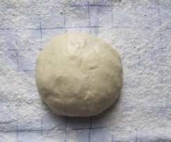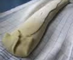 Ein Küchentuch gut mit Mehl bestäuben und den Teig darauf legen.