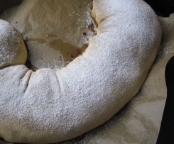 Leider ist er schon während dem Backen gerissen und beim Auskühlen ziemlich zusammen gefallen.
