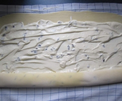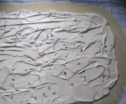 Die Füllung auf den Teig streichen und dabei einen Rand frei lassen.