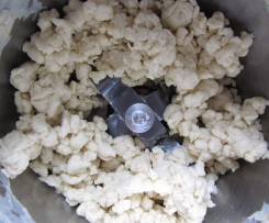 "Mixtopf geschlossen" nehmen und von Hand noch mal kurz durchkneten.Den Teig in eine Plastiktüte geben und 45 Minuten ruhen lassen. Der