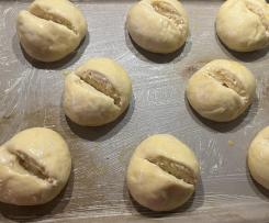 Zum Schluss noch das restliche Ei verquirlen und die Brötchen damit einstreichen.