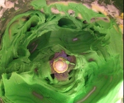 so schreiend grün sollten sie allerdings gar nicht werden... hatte von Lebensmittelfarbe auf die bunten Lebensmittelpaste gewechselt und unterschätzt wie viel stärker die Paste einfärbt....