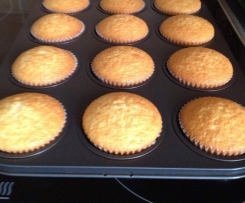 Die Cupcakes ca. 20 Minuten backen, bis sie goldgelb sind. Garprobe machen.