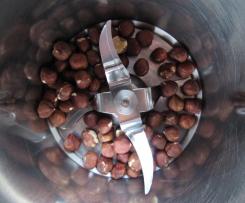 "Mixtopf geschlossen" stellen und die Waage auf Null drücken. 100 g Mehl hineinwiegen und andrücken. Die gemahlenen Haselnüsse und die restlichen 100 g Mehl hinzufügen und wieder andrücken. - Das Glas vom