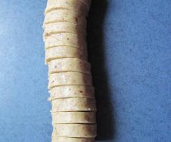 - Die Rollen in knapp 1 cm dicke Scheiben schneiden .....