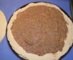 Diese Masse auf einen runden Boden zur hälfte auftragen, dabei 1 cm am Rand frei lassen.. eine Teigplatte auflegen und den Rest der Masse aufstreichen. .wieder 1cm freilassen und letzte Platte aufsetzen