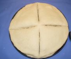 Ich nehme da gerne eine Pizzablech da passt wenigstens gleich die Größe und ich habe eine Backform
