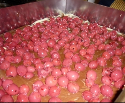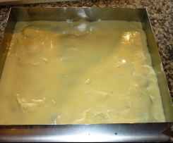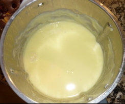"Mixtopf geschlossen" geben und 2 min./ 50° / Stufe 2 schmelzen.Trüffelmasse ca. 20 Minuten abkühlen lassen. Masse auf die Buttercreme geben und durch leichte Kippbewegungen des Blechs Masse gleichmäsig verteilen. Trüffelmasse braucht ca. 4 Stunden bis sie schön schnittfest wird.