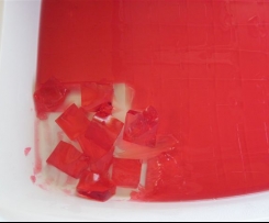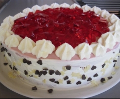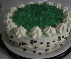 Tortenring entfernen. Nun aus dem Wackelpuddig kleine Würfel schneiden und auf der Torte verteilen - evt. noch mit Sahne verziehren.