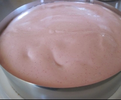 Den ersten Boden in einen Tortenring setzen. Die Masse zu Hälfte auf den Boden gießen (ist ziemlcih flüssig), oberen Boden drauf und den Rest der Masse verteilen und glattstreichen.