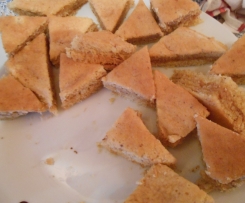 Nach dem Backen die Springform aus dem Ofen nehmen und sofort in Dreiecke schneiden! Wer möchte kann auch Würfel draus machen! Die runde Springform eignet sich aber gut für Dreiecke!