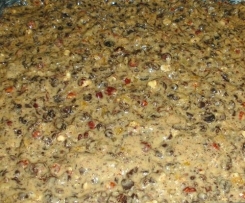 Zutaten können durch andere ersetzt werden, wichtig ist nur, dass die Konsistenz ähnlich bleibt; z.B.: Mandeln statt Nüsse, getr. Aprikosen statt Orangeat, vollmilch statt bitter Schokolade, ...