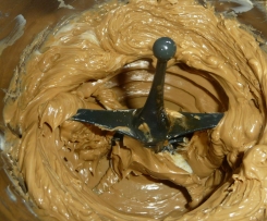 "Mixtopf geschlossen" geben und auf 100° ne gute Minute erhitzen. Dann den Instant Kaffee zugeben und 1Minute/Stufe4 stellen. Kurz auf Stufe6 hochstellen damit die Masse homogen wird. Umfüllen erkalten lassenZimmerwarme Butter in 6 Stücke schneiden und schaumig rühren, zwischendurch immer wieder mit dem Spatel runter schieben.