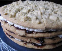 - Jetzt einen weiteren Boden darauflegen. Wieder ein Drittel Zwetschenmus und Sahne darauf verteilen. Ebenso den dritten Boden sowie das restliche Mus und die Sahne.