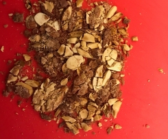 2. gebrannte Mandeln grob mit dem Nudelholz zerschlagen, zur Teigmasse geben und kurz Linkslauf deaktiviert"Linkslauf deaktiviert" auf Stufe 3 unterrühren.