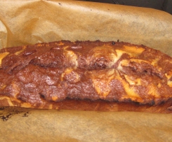 Ab in den Ofen bei 180 ° C und fertig bei belieben kann er mit Schokoguss überzogen werden oder mit Puderzucker.