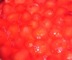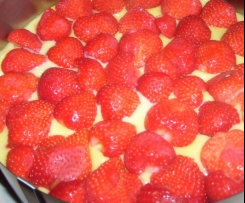 Die Erdbeeren auf die Puddingschicht legen und den Tortenguss darübner geben ...