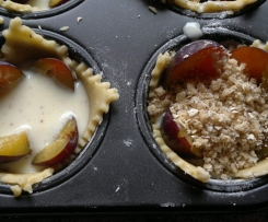 7. in jedes Förmchen 4 Zwetschgenspalten an die Teigspitzen stellen.