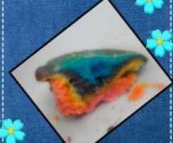 In jedes Schälchen nun je eine Lebensmittelfarbe zugeben und vermischen. Regenbogenfarben sind gelb, orange, rot, lila, grün und blau.